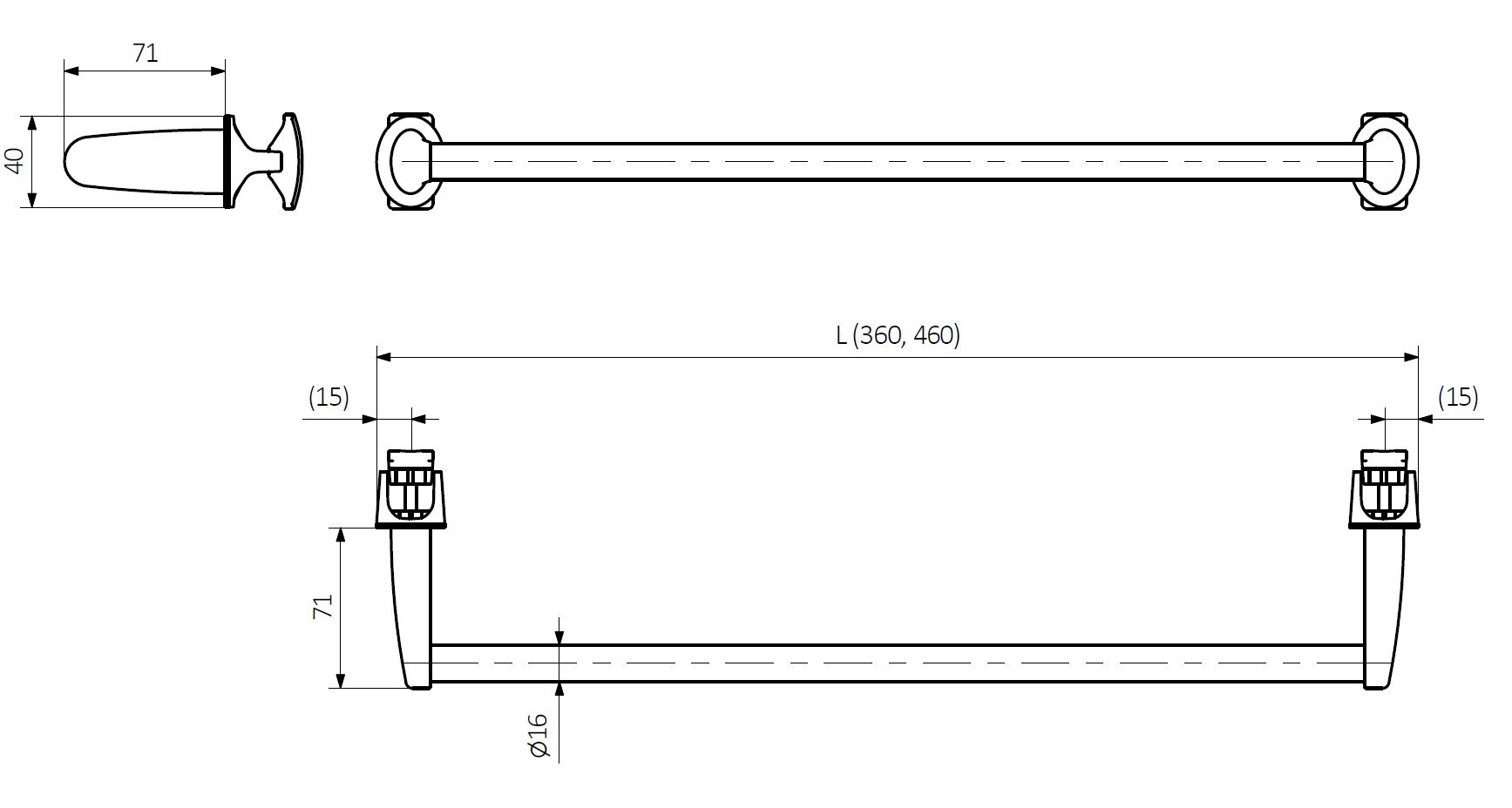 - dimenzija držača: fi 16 x 370 ili 460 mm (stvarna dimenzija može biti do 3cm kraća)